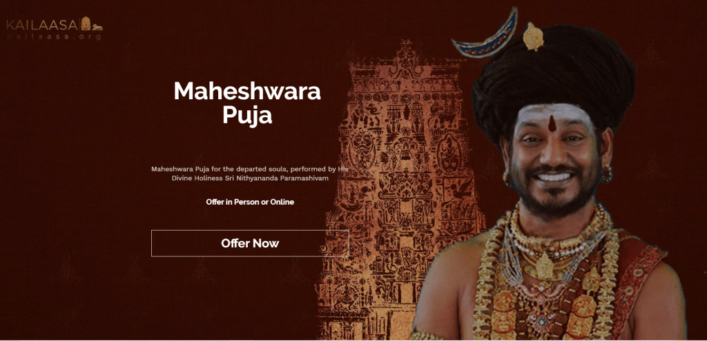 As per Shrikailasa Hindu nation, Maheshwara Puja is offered so that the departed soul can be liberated in the presence of The Avatar, His Holiness Bhagavan Nithyananda Paramashivam.
