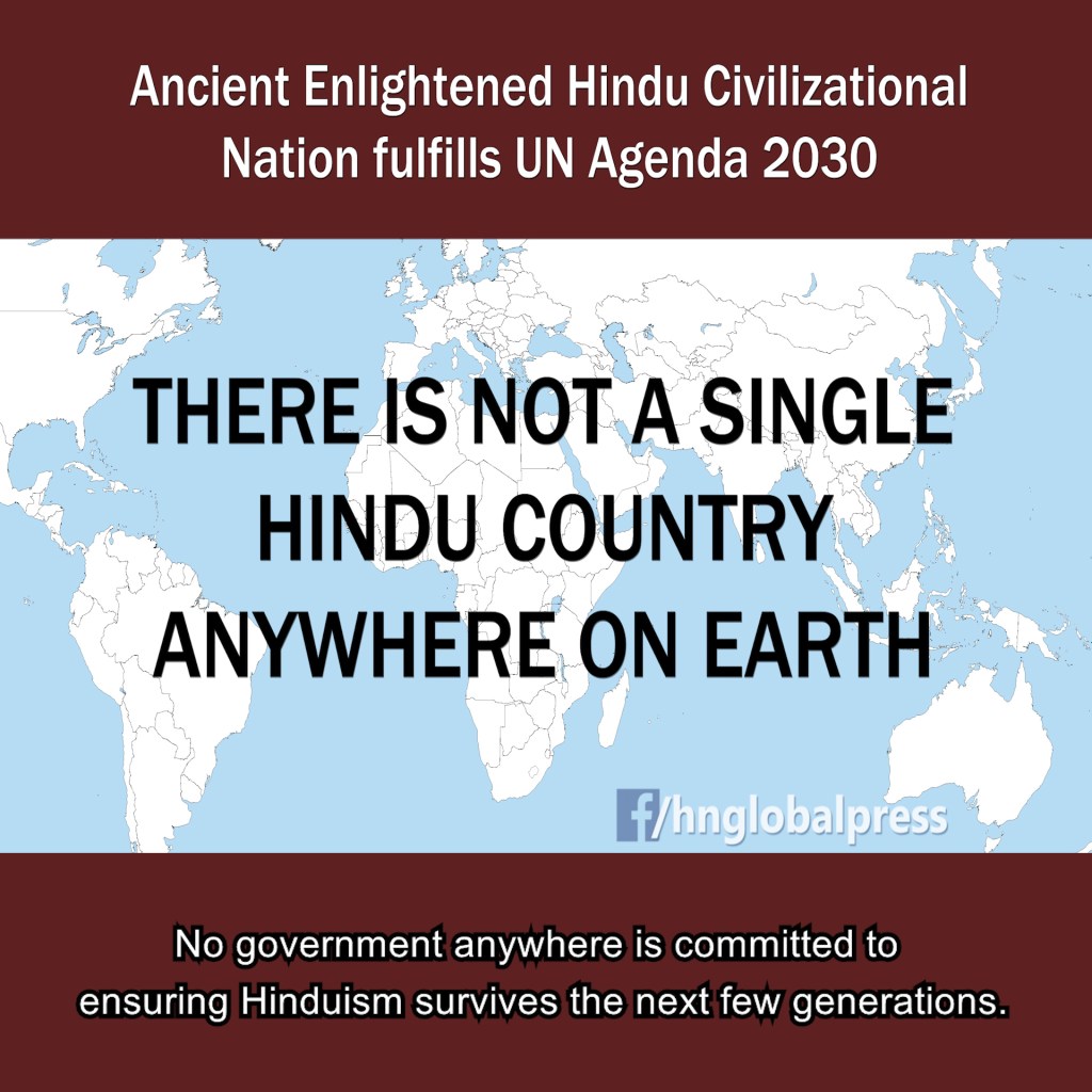 No country is committed to Manu Smrti or a Hindu constitution. There is not a single country anywhere on the planet that is committed to preserving or protecting Hinduism — there is no protection and no guarantee of peaceful survival, or even survival period, for Hindus. The current day United Nations promotes the 2030 Agenda, for Sustainable Development, at the heart of which is 17 Sustainable Development Goals (SDGs). Adopted by all United Nations Member States in 2015, these 17 SDGs provide “a shared blueprint for peace and prosperity for people and the planet, now and into the future.” The world’s oldest still-surviving ancient civilization of Sanatana Hindu Dharma has much to contribute to the modern struggling humanity in every aspect of the United Nations SDGs for 2030. And the only constitution on the planet dedicated to Sanatana Hindu Dharma and the time-tested, acid-washed truths of Manu Smrti is the revival of the world’s oldest success story — the Ancient Enlightened Hindu Civilizational Nation of Kailasa.